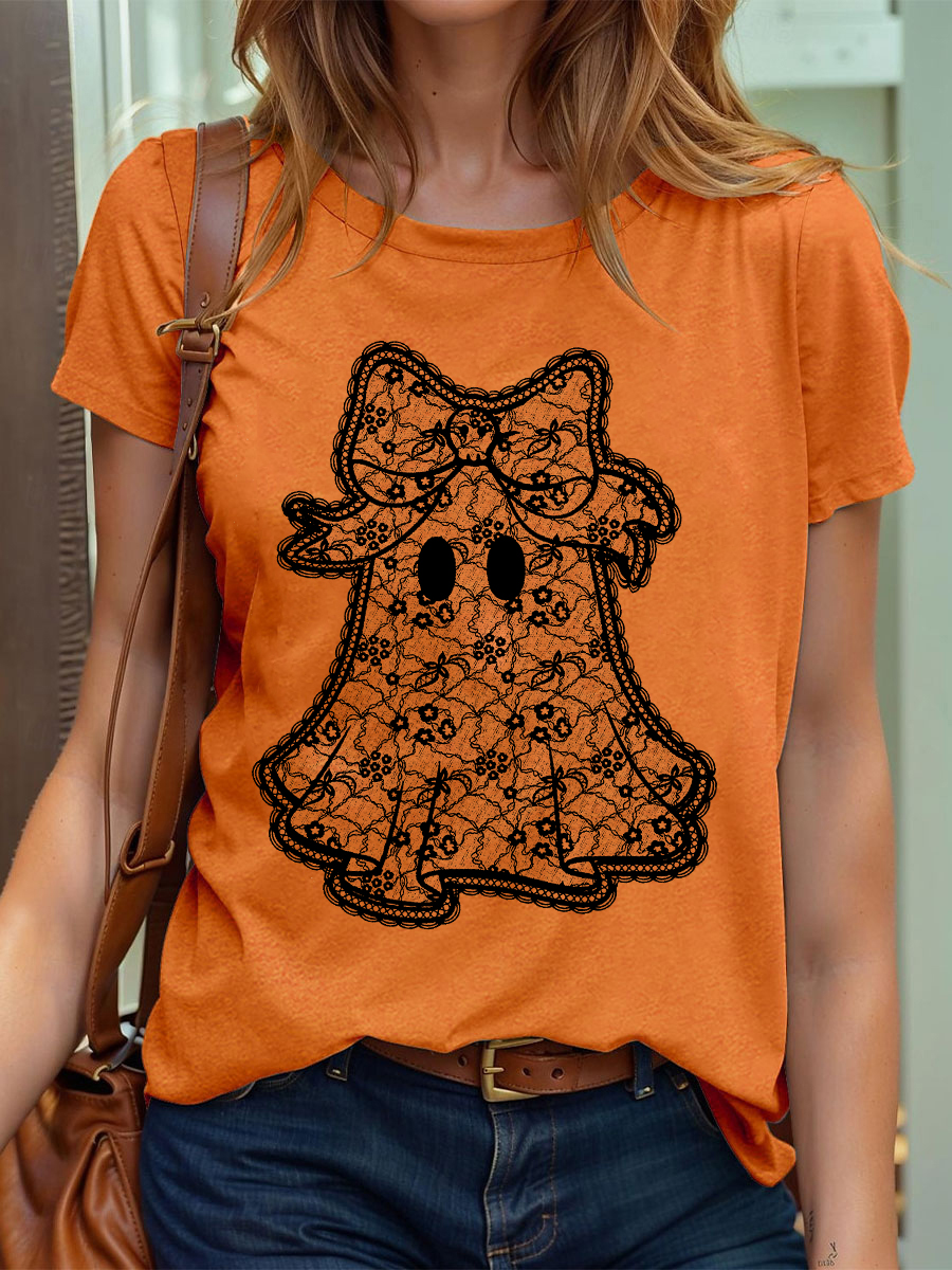 Women's Halloween Lace Ghost Short Sleeve T-Shirt