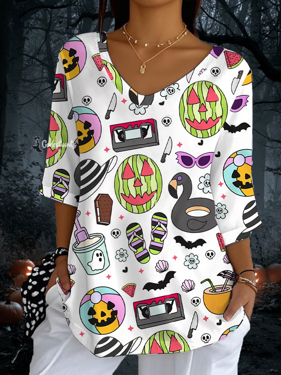 Women's Halloween print V-neck T-shirts