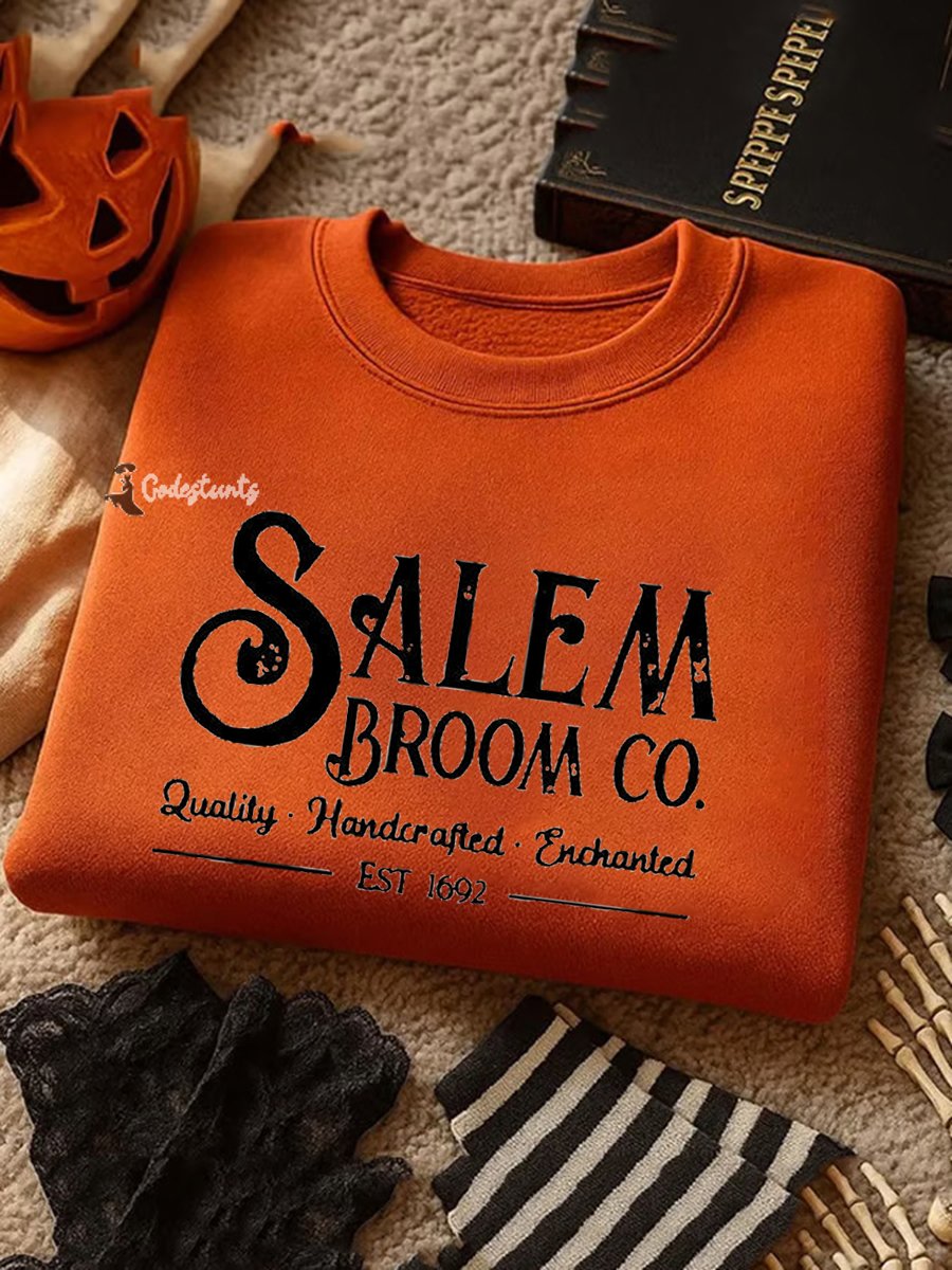 Women's Halloween Salem Broom 1692 Printed Sweatshirt