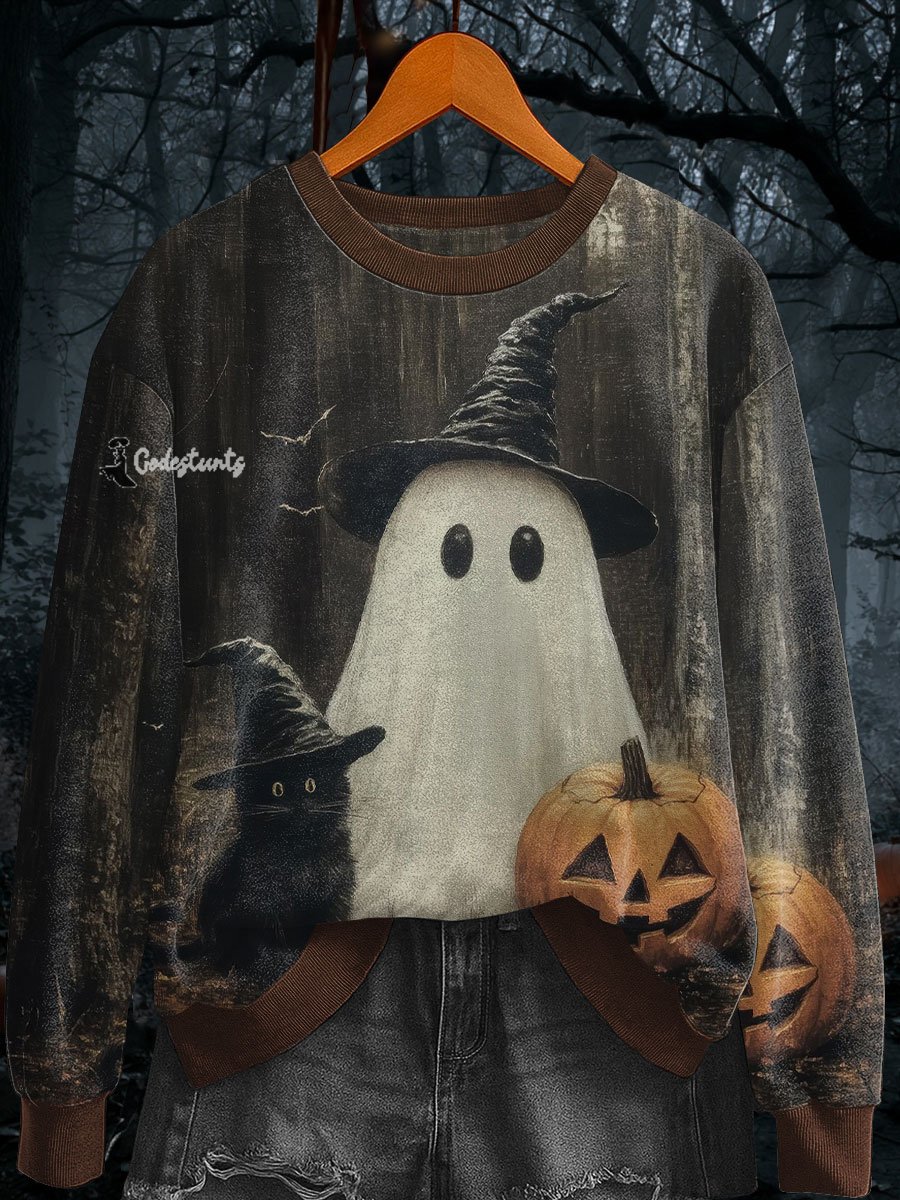 Women's Halloween Spooky Black Cat Pumpkin Sweatshirts