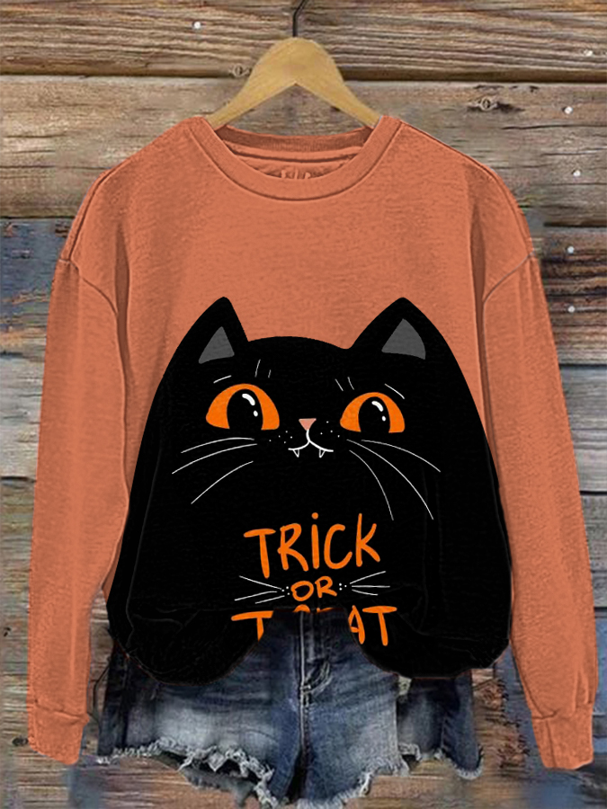 Women's Halloween Trick Or Treat Printed Sweatshirt