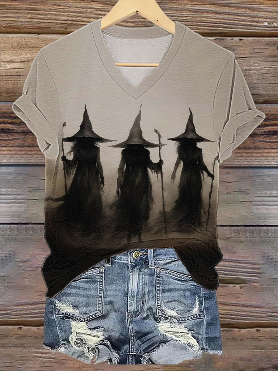 Women's Halloween Vintage Witch Print T-Shirt