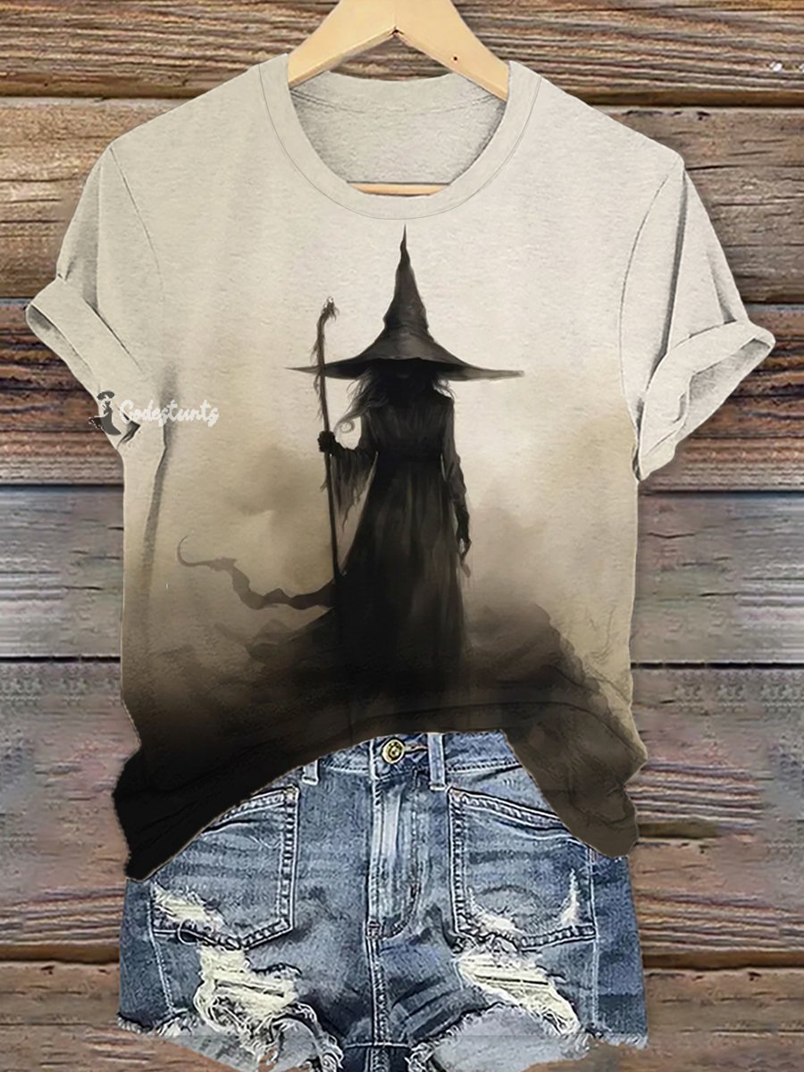 Women's Halloween Vintage Witch Print T-Shirt