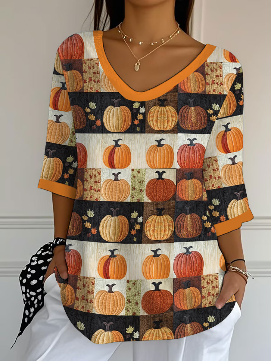 Women's Pumpkin Art Print Casual T-Shirt