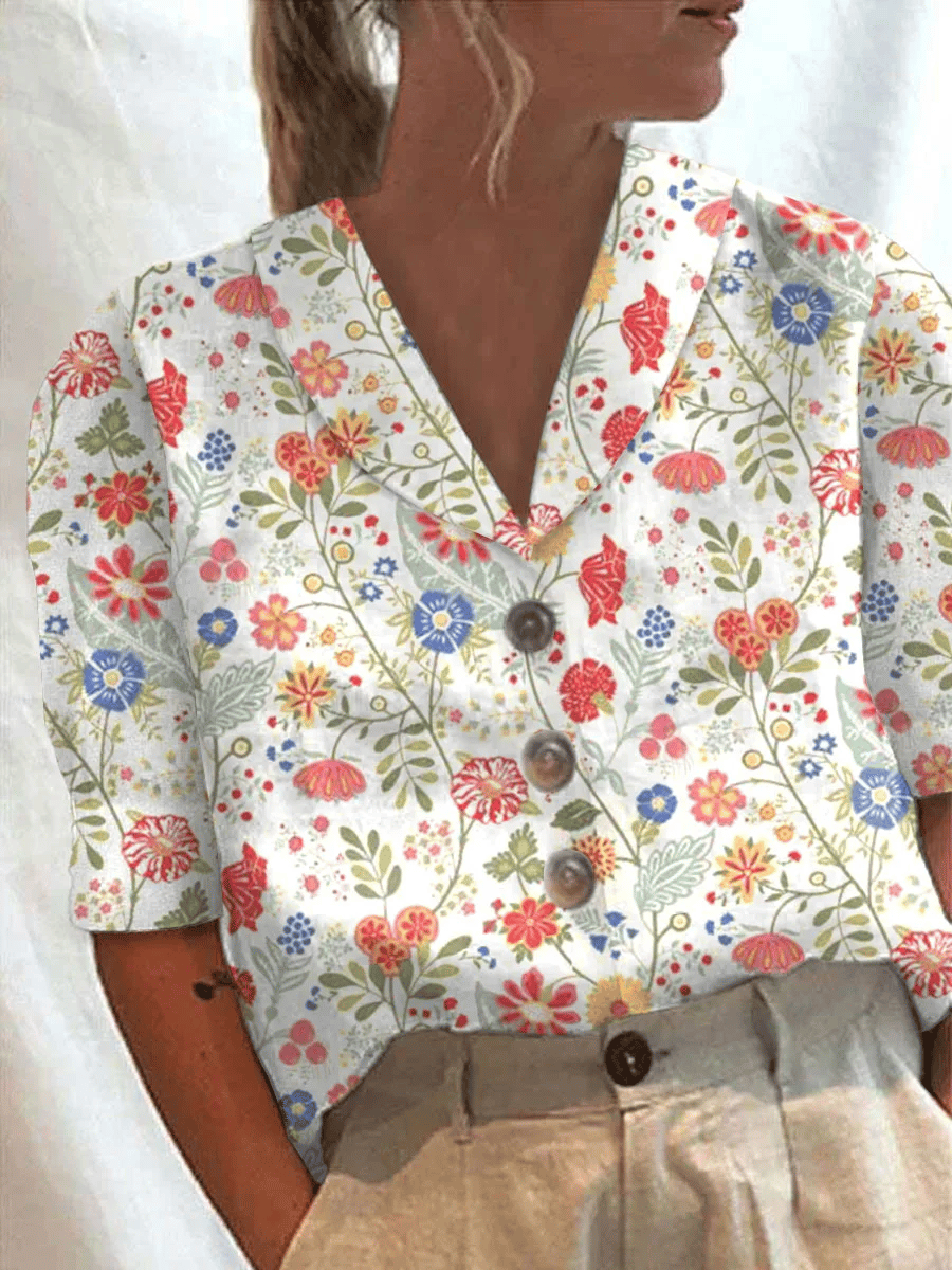 Women's Retro Floral Art Print Casual Comfort Shirt