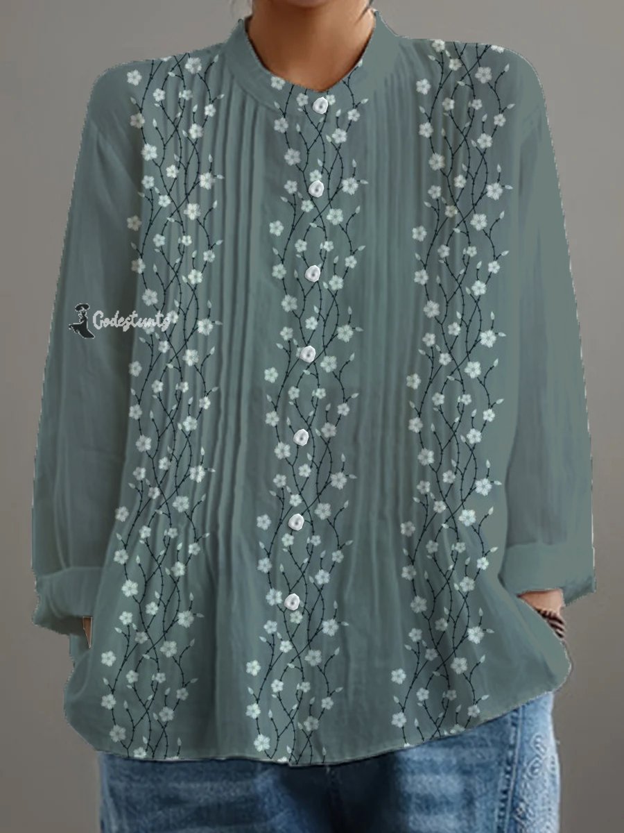 Women's Retro Floral Art Print Casual Shirt
