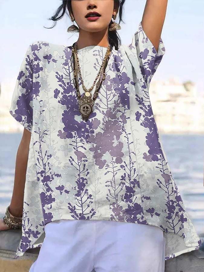 Women's Retro Floral Art Print Casual Shirt