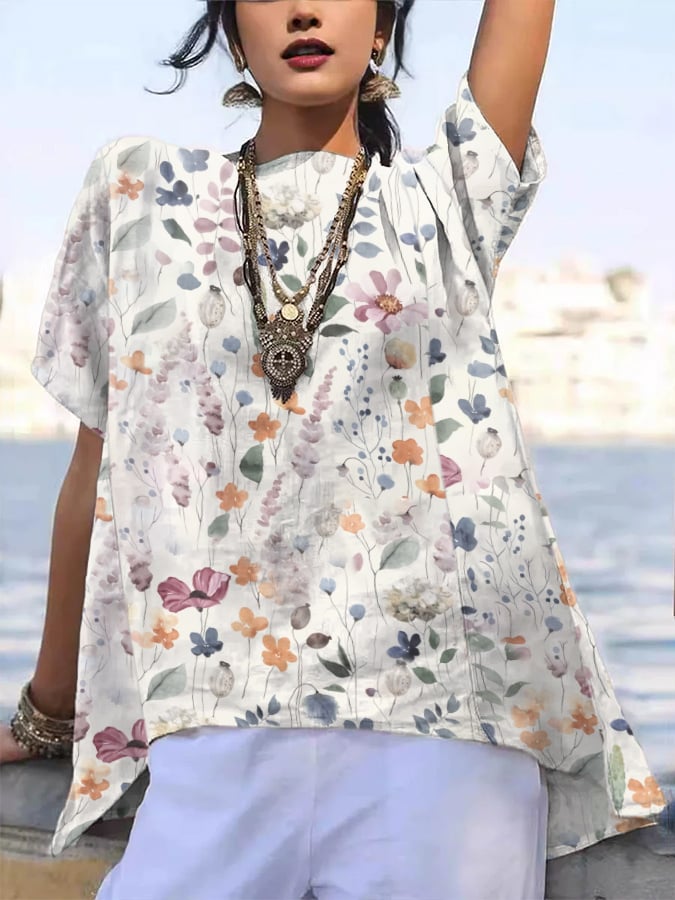 Women's Retro Floral Art Print Casual Shirt