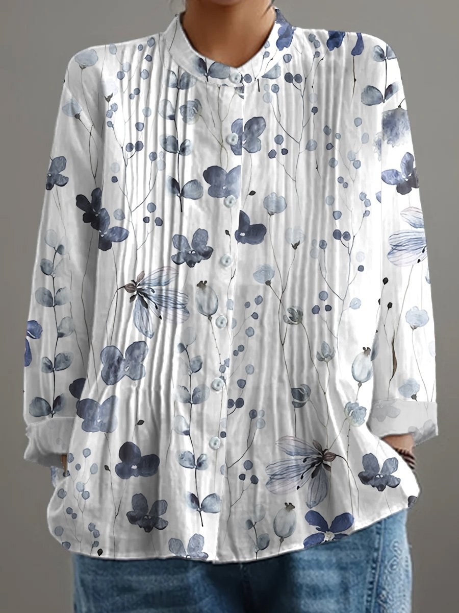 Women's Retro Floral Art Print Casual Shirt