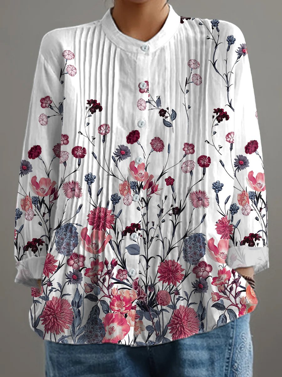 Women's Retro Floral Art Print Casual Shirt