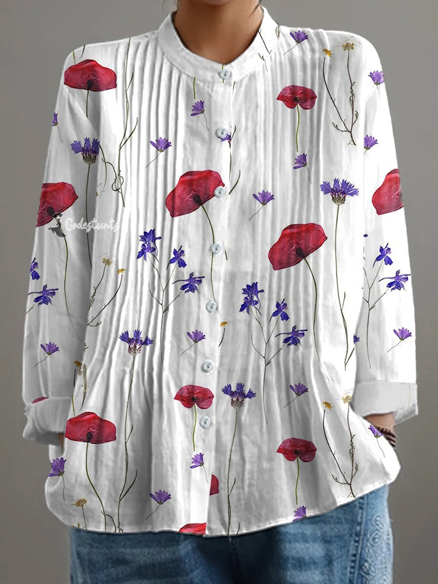 Women's Retro Floral Art Print Casual Shirt