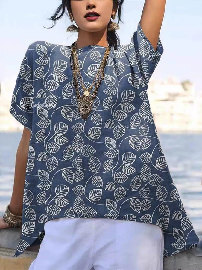 Women's Retro Floral Art Print Casual Shirt