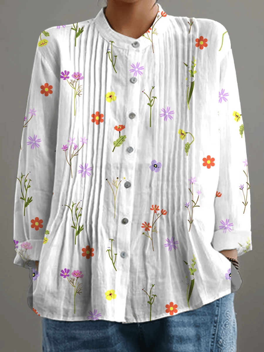 Women's Retro Floral Art Print Casual Shirt