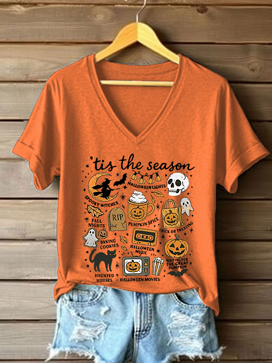 Women's Retro Halloween Tis The Season Spooky Season Short Sleeve T-Shirt