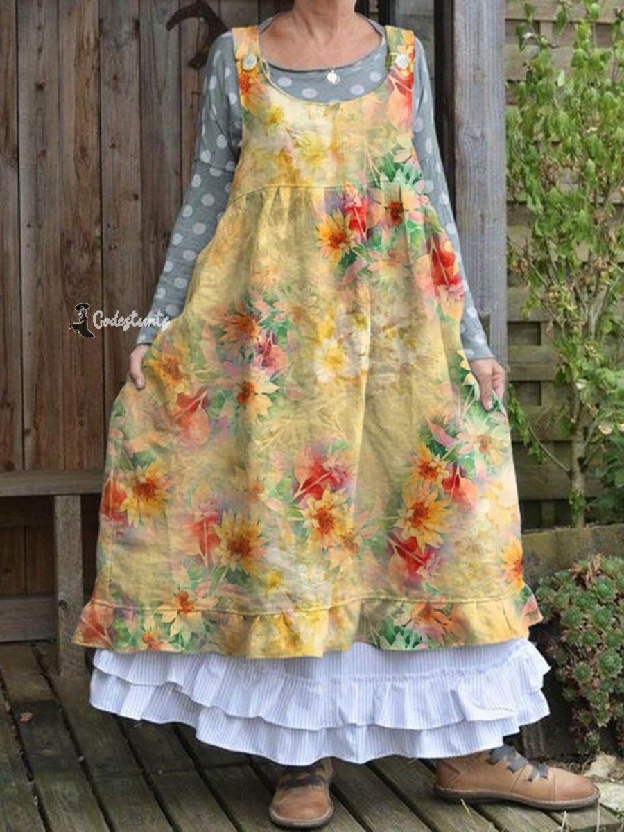 Women'S Retro Lovely Floral Art Print Casual Cotton Dress