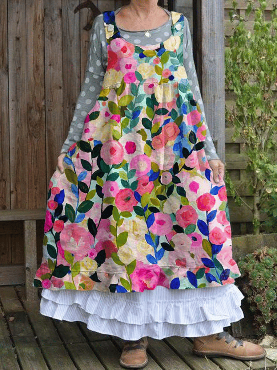 Women'S Retro Lovely Floral Art Print Casual Cotton Dress