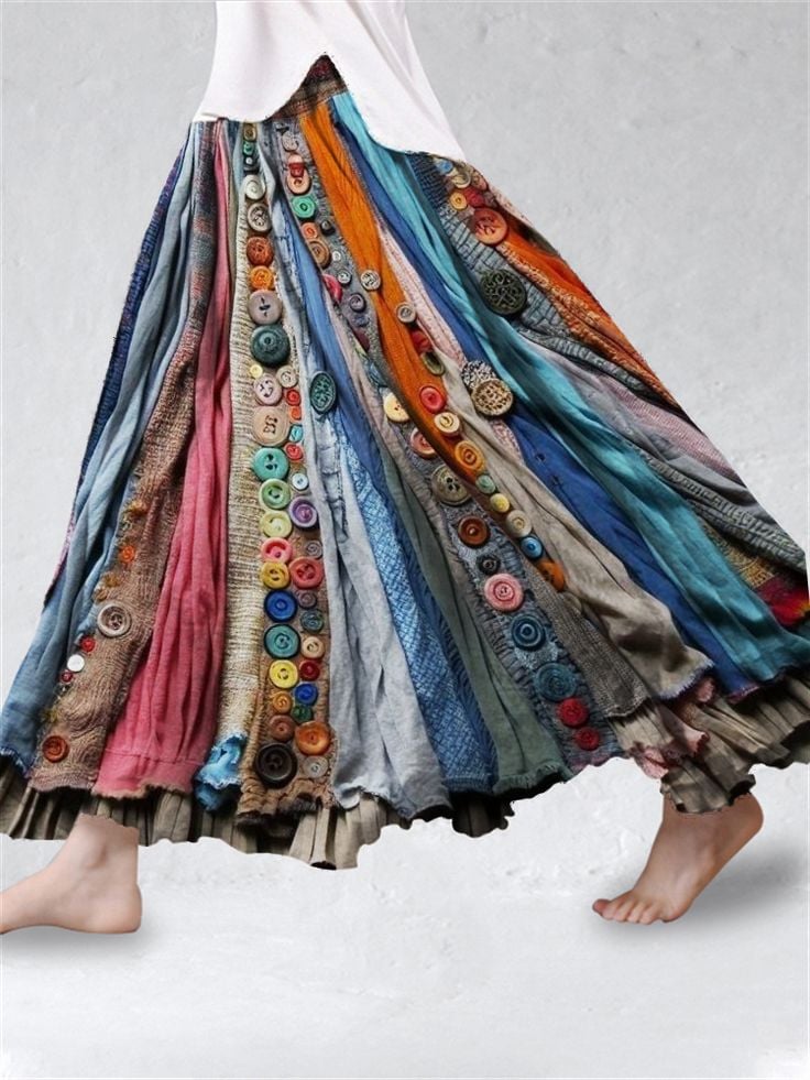 Women's Retro Textile Flowy Linen Blend Wide Skirt
