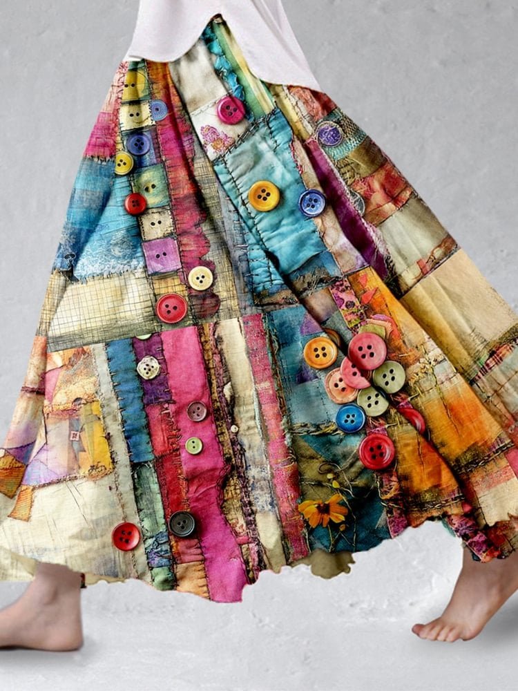 Women's Retro Textile Flowy Linen Blend Wide Skirt