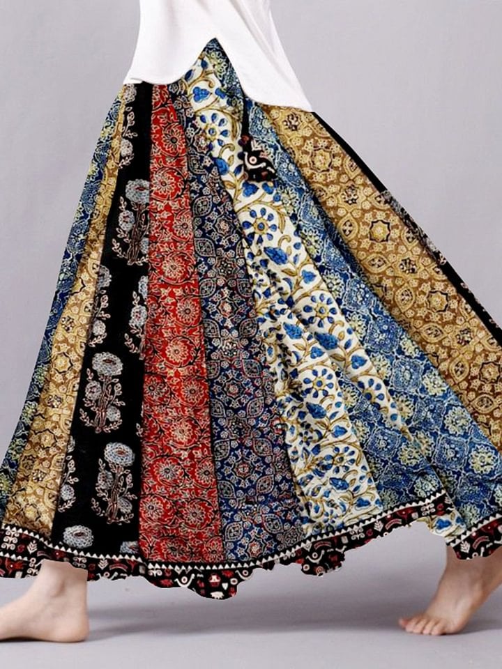 Women's Retro Textile Flowy Linen Blend Wide Skirt