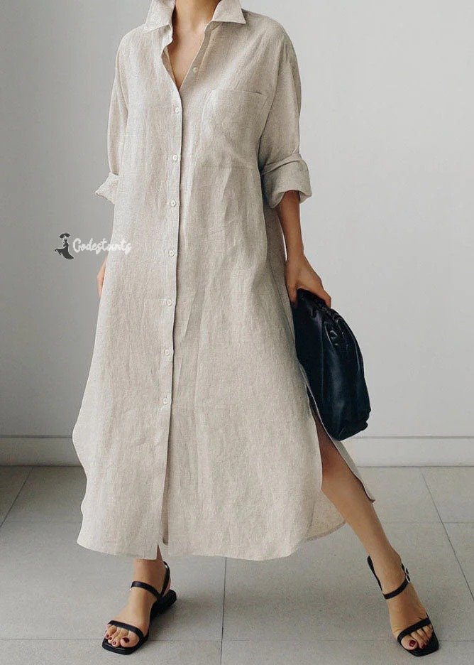 Women's Solid Color Casual Elegant Cotton And Linen Irregular Shirt Long Dress