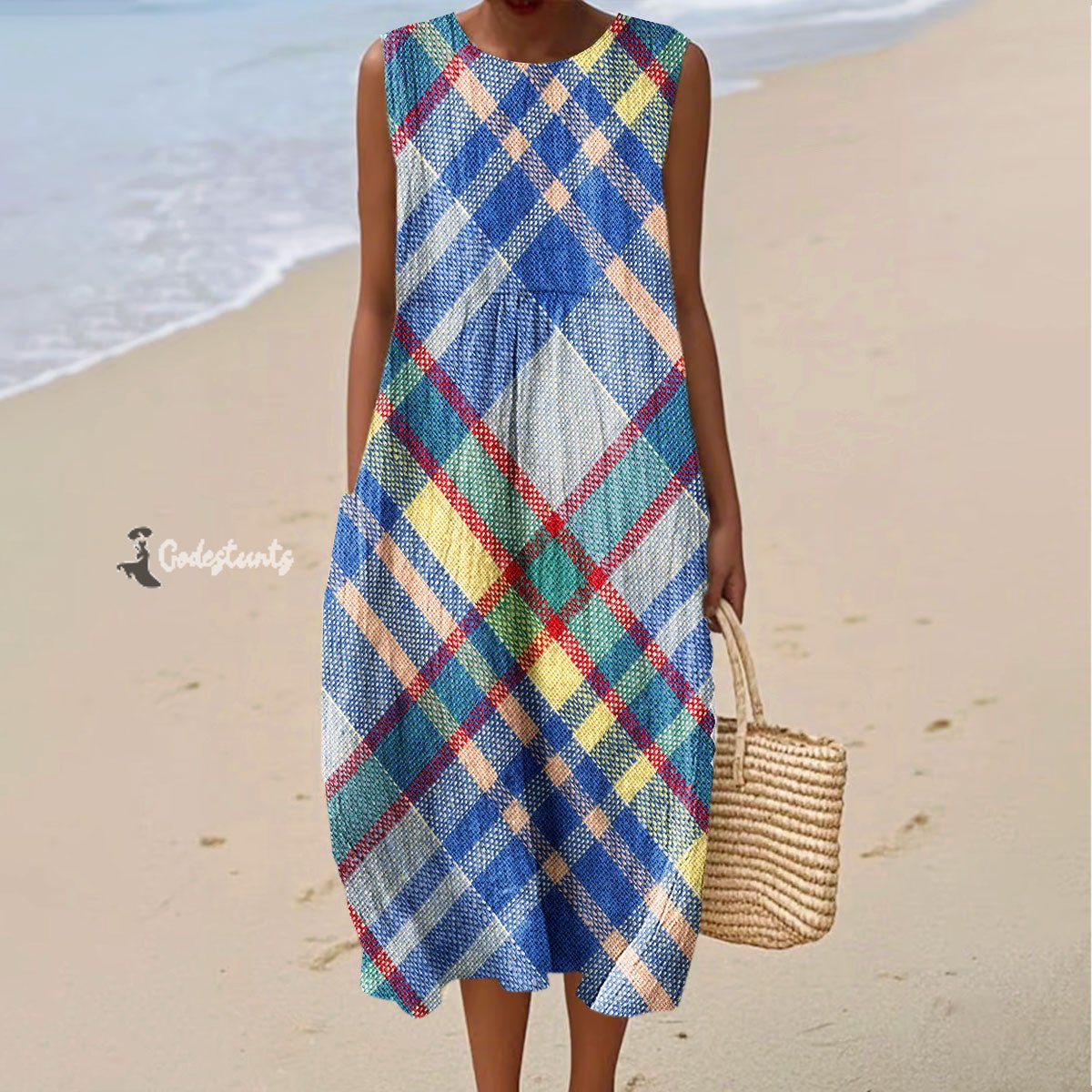 Gender: For Women Style: Casual Fit Type:FIt Shirt Length: Regular Sleeves Length: NO Sleeve Collar: Round collar Material: 70% Cotton+30%Linen Material Stretch: No Stretch Pocket :Side poctket Weight: 0.400kg Package:1 x Dress