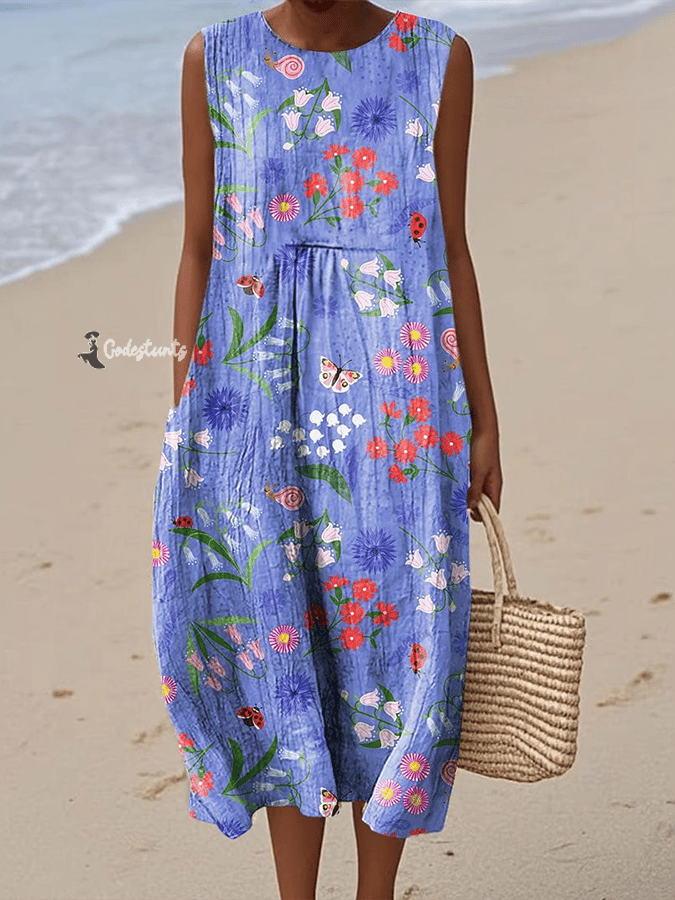 Women's Vintage Botanical Floral Print With Pockets Dress