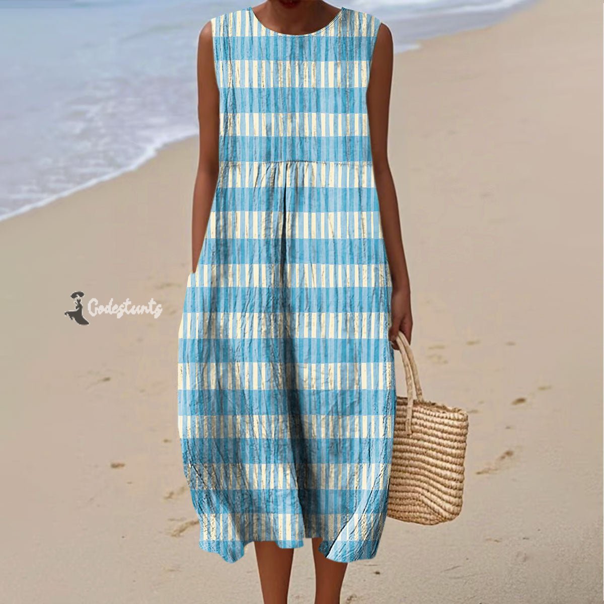 Gender: For Women Style: Casual Fit Type:FIt Shirt Length: Regular Sleeves Length: NO Sleeve Collar: Round collar Material: 70% Cotton+30%Linen Material Stretch: No Stretch Pocket :Side poctket Weight: 0.400kg Package:1 x Dress