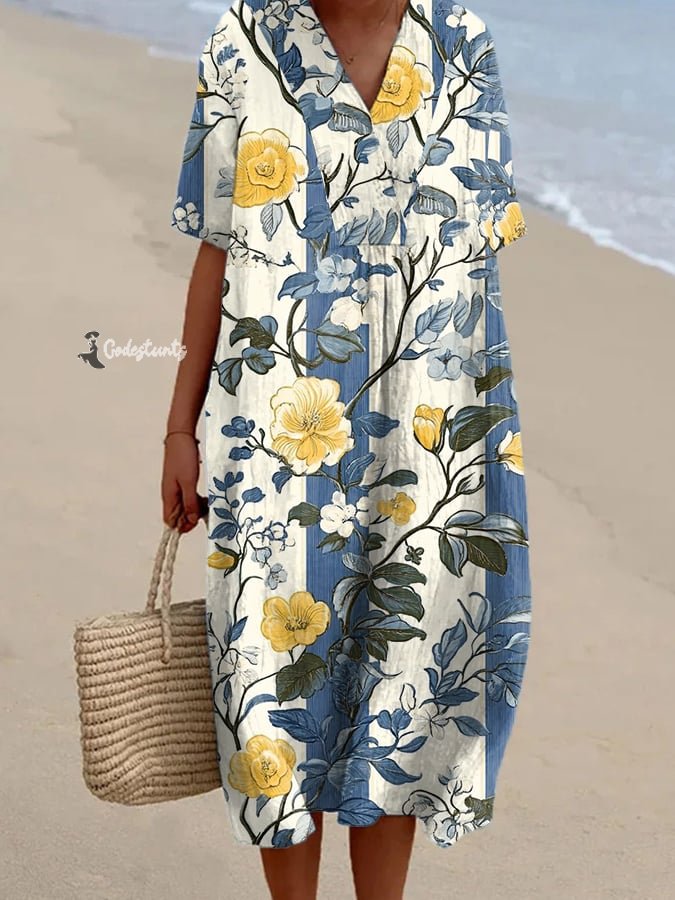 Women's Vintage Floral Art Print Dress