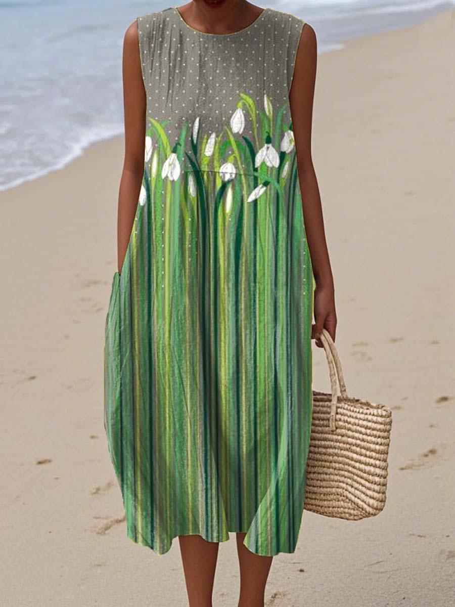 Gender: For Women Style: Casual Fit Type:FIt Shirt Length: Regular Sleeves Length: NO Sleeve Collar: Round collar Material: 70% Cotton+30%Linen Material Stretch: No Stretch Pocket :Side poctket Weight: 0.400kg Package:1 x Dress