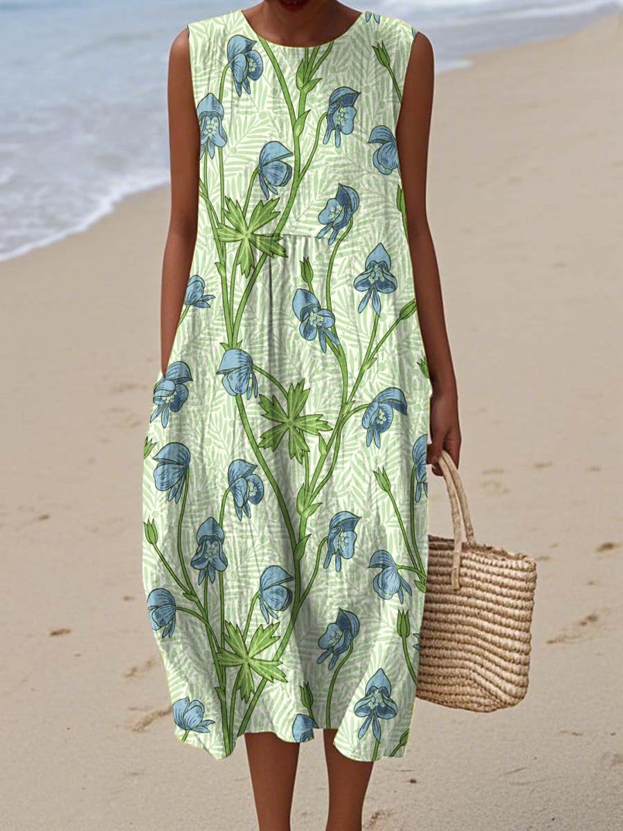Gender: For Women Style: Casual Fit Type:FIt Shirt Length: Regular Sleeves Length: NO Sleeve Collar: Round collar Material: 70% Cotton+30%Linen Material Stretch: No Stretch Pocket :Side poctket Weight: 0.400kg Package:1 x Dress