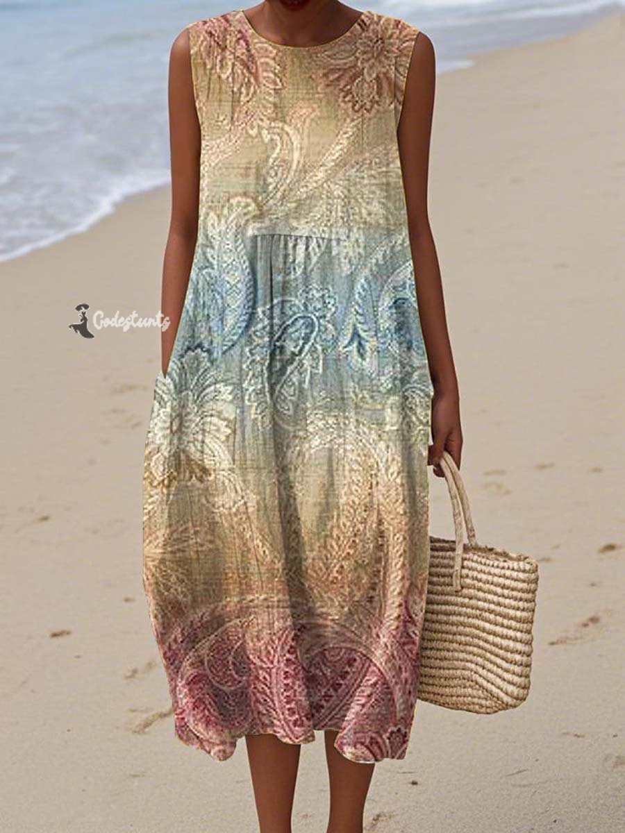 Gender: For Women Style: Casual Fit Type:FIt Shirt Length: Regular Sleeves Length: NO Sleeve Collar: Round collar Material: 70% Cotton+30%Linen Material Stretch: No Stretch Pocket :Side poctket Weight: 0.400kg Package:1 x Dress