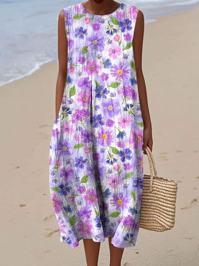 Women's Vintage Floral Print Casual Dress