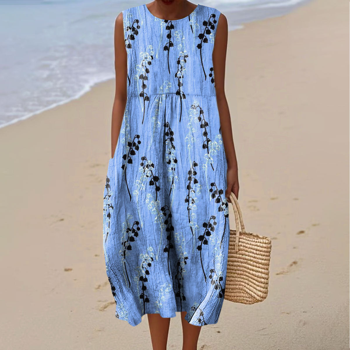 Gender: For Women Style: Casual Fit Type:FIt Shirt Length: Regular Sleeves Length: NO Sleeve Collar: Round collar Material: 70% Cotton+30%Linen Material Stretch: No Stretch Pocket :Side poctket Weight: 0.400kg Package:1 x Dress