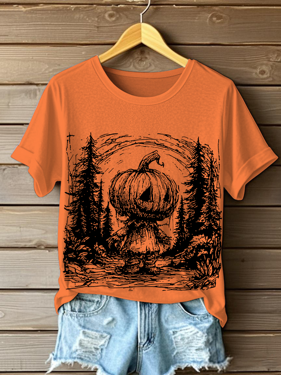 Women's Vintage Halloween Horror Pumpkin Spooky Season Short Sleeve T-Shirt
