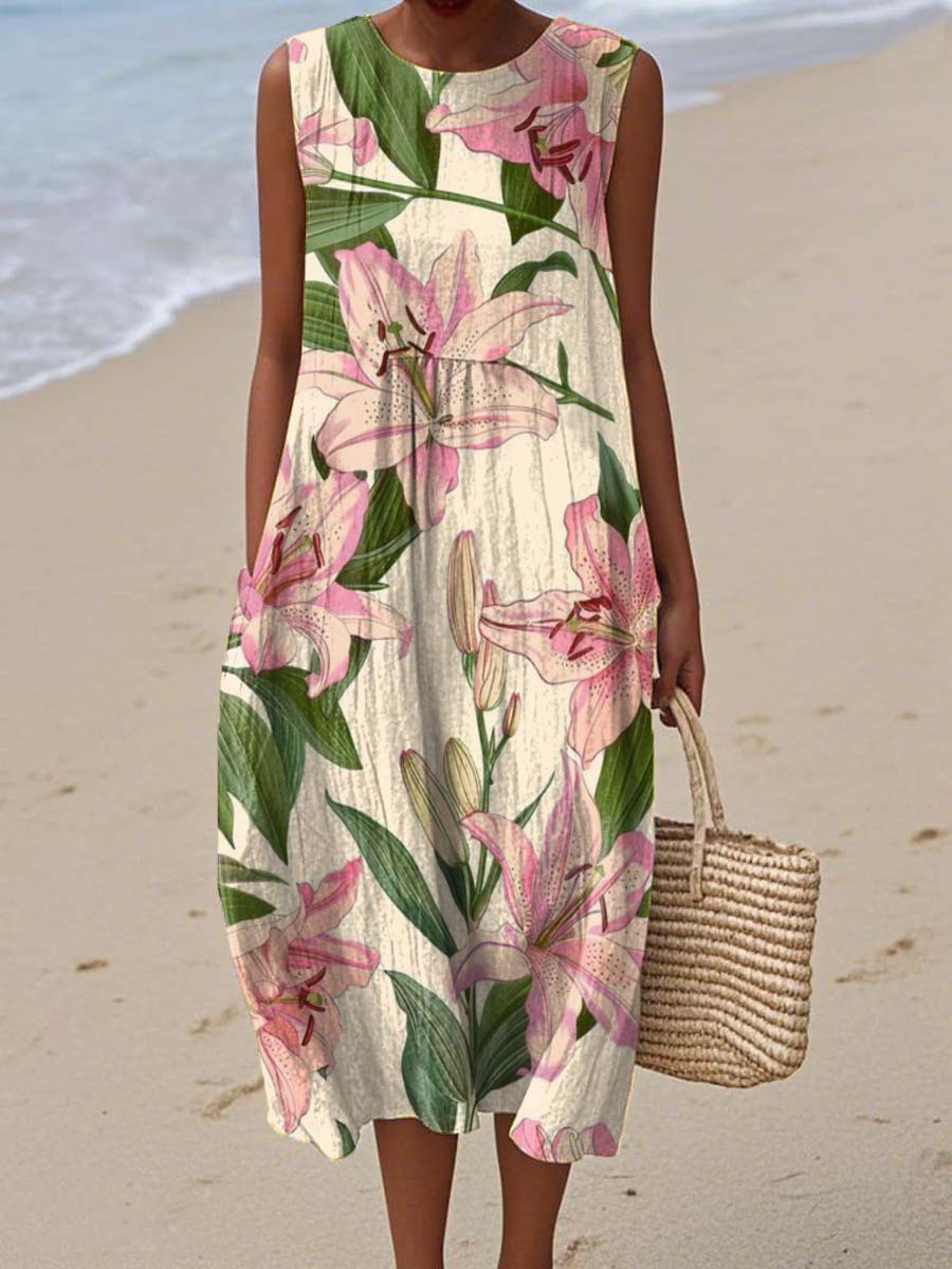 Gender: For Women Style: Casual Fit Type:FIt Shirt Length: Regular Sleeves Length: NO Sleeve Collar: Round collar Material: 70% Cotton+30%Linen Material Stretch: No Stretch Pocket :Side poctket Weight: 0.400kg Package:1 x Dress