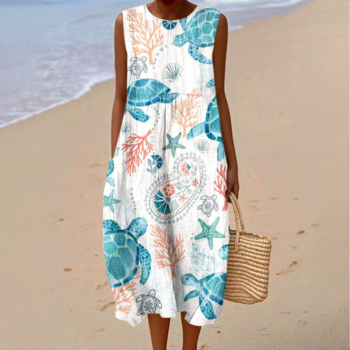 Gender: For Women Style: Casual Fit Type:FIt Shirt Length: Regular Sleeves Length: NO Sleeve Collar: Round collar Material: 70% Cotton+30%Linen Material Stretch: No Stretch Pocket :Side poctket Weight: 0.400kg Package:1 x Dress