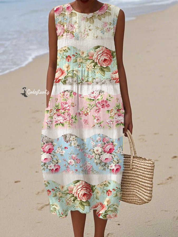 Women's Vintage Oil Painting Floral Print Dress