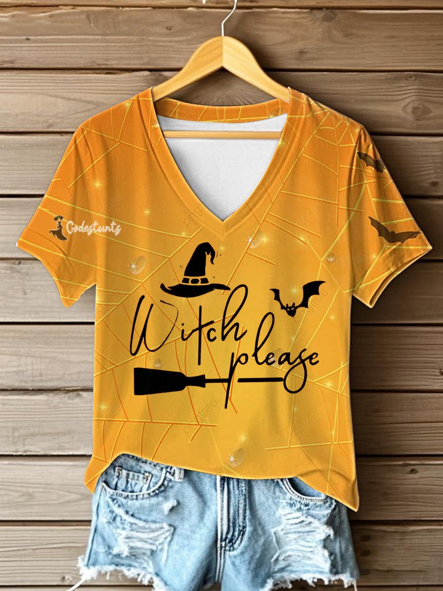 Women's Witch Please Halloween Printed V-neck T-shirt